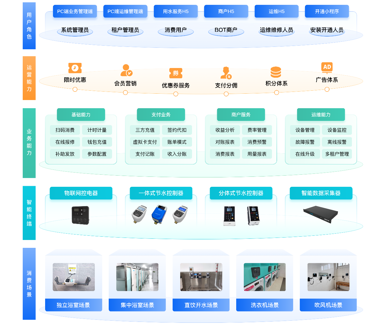 新開普校園生活智慧服務平臺是一套面向高校BOT運營模式的全場景解決方案,全面覆蓋熱水、飲水、洗衣等生活服務場景,以“場景一體化、角色全覆蓋”為核心,依托云端架構與多角色閉環(huán)管理體系,通過智能預警、離線容錯等技術有效提升支付靈活性、數(shù)據(jù)協(xié)同與多角色管理能力,助力校園用水系統(tǒng)實現(xiàn)智能化、數(shù)據(jù)化與可持續(xù)化發(fā)展,為高校和運營商提供高效節(jié)能的智慧用水生態(tài)解決方案,顯著提升運營效率與用戶體驗。